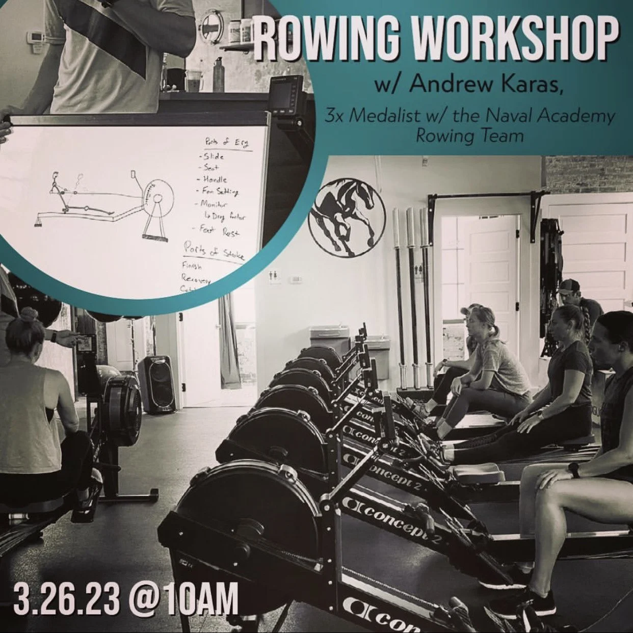 We're looking forward to once again partnering with Andrew Karas, 4x High School State Champ, 1x D1 Collegiate Champ and 3x Medalist with the Naval Academy Rowing Team, to host an erging (rowing) workshop.